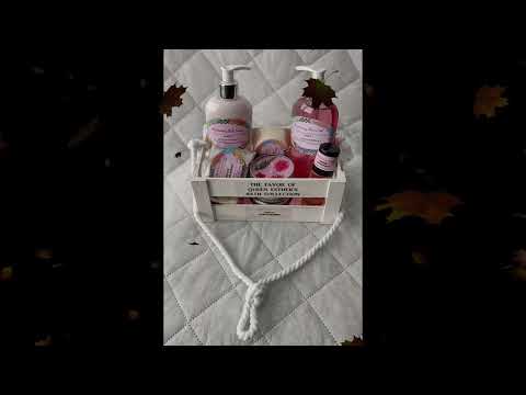 The Favor of Queen Esther's 6 piece hanging crate basket bath set comes with 10-oz bottles of moisturizing lotion and shower gel, moisturizing shea butter soap,, 1- 4oz candle, 1 bath sponge and 1oz roll-on fragrance body oil to set the atmosphere for meditating and prayer.